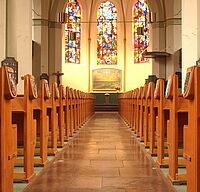 © Lübbe One of the things to admire in this church of the cross, built between 1869 and 1872, is the altarpiece from Hugo Schnars-Alquist which depicts a rough sea with cross. Coats of arms from naval ships and plaques from the Kaiser‘s navy convey the last respects to mariners in the last century.