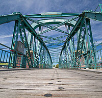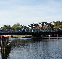 © Stöver The special feature of the „Nassau“ bridge, built over 90 years ago, is its ability to adapt to the respective water level. It is part of the Nassau harbour, named after the naval ship S.M.S. Nassau whose crew was the first to use the bridge.